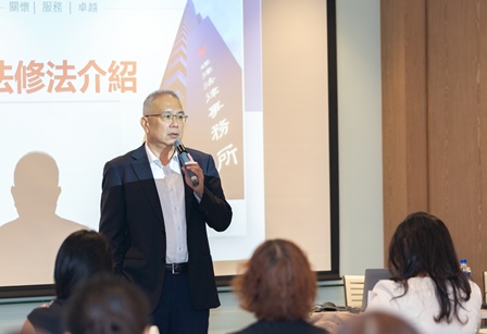 本次研討會將分為「性平三法修法內容介紹」及「雇主因應新修正性平三法的措施」二大主題,分別由本所施穎弘初級合夥律師及余天琦合夥律師擔綱主講。